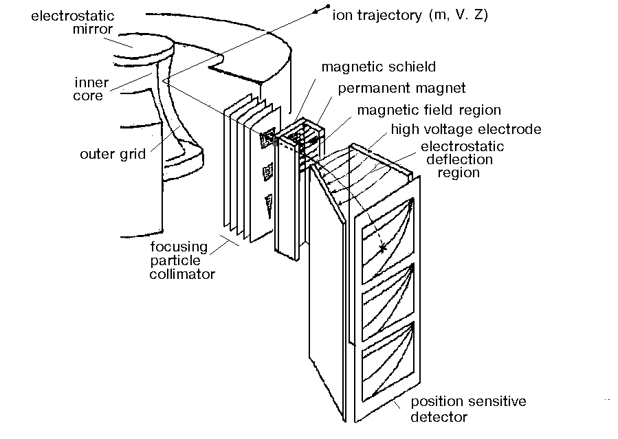 Main scientific objectives:to investigate the fine structure, dynamics and origin of near -Martian plasma with measurements of 3-d distribution functions of hot ions species with high time resolution. Instrument consists of 36 separated Thomson parabola energy-mass analyzers followed by position-sensitive detectors. The field of each analyzer is determined by multi-hole collimator and hyperbolic electrostatic mirror. The analyser allows to measure 3-d distribution function of several ions species in wide energy range.