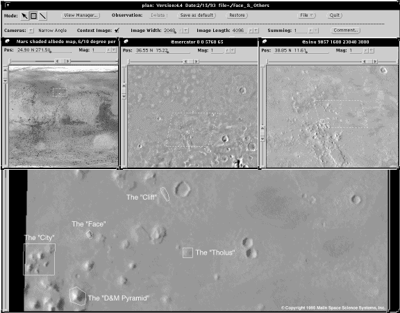 The "Face on Mars," "City," "Fortress," "Cliff," "Tholus," "D&M