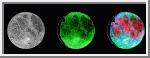 Middle: NIMS, showing water ice on the surface. Dark is less water, bright