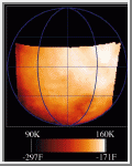 daytime temperatures ranging across the surface from 90 to 160 Kelvin