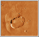 The caldera on Arsia Mons is considerably larger than the calderas on