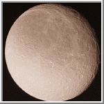 This image of Rhea was acquired by the Voyager 1 spacecraft on