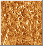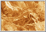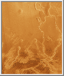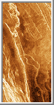 Volcanic plains typically cover large lowland areas separated by mountains or ridge belts; they extend over 85% of the planetary surface. The plains range in elevation from about 1.5 kilometers (.9 miles) below to 2 kilometers (1.2 miles) above the mean planetary radius of 6,051 kilometers (3,761 miles) [Guest et al., 1992]. They consist of extensive sheets of flood lavas hundreds of kilometers in width and mostly 100 to 700 kilometers (62 to 430 miles) in length. Some plain regions are bright in radar images, but most are dark, indicating a smooth surface.